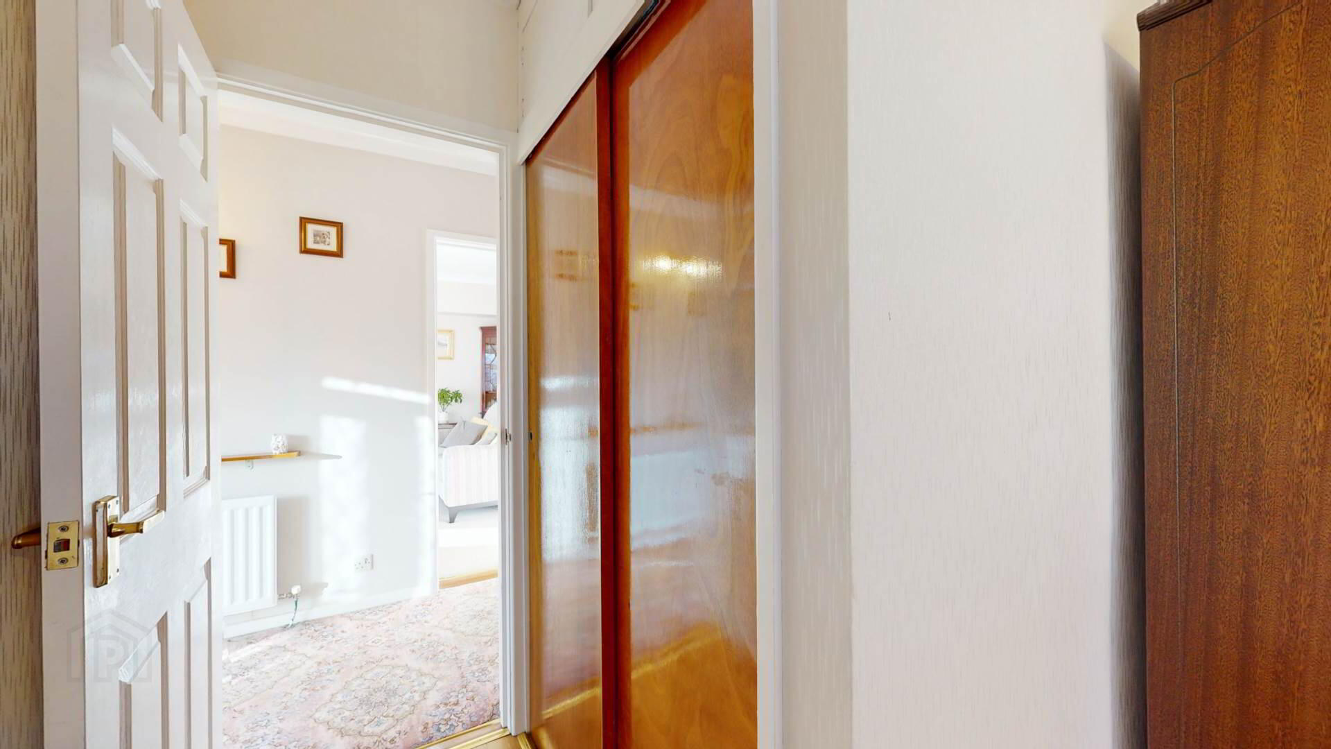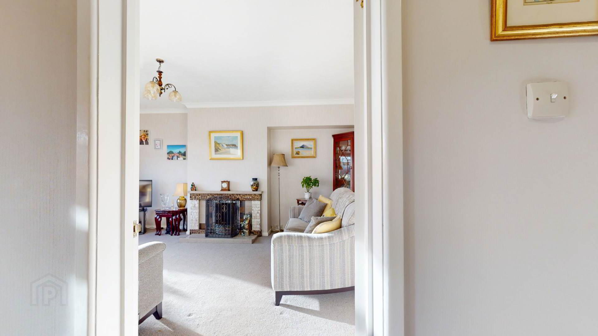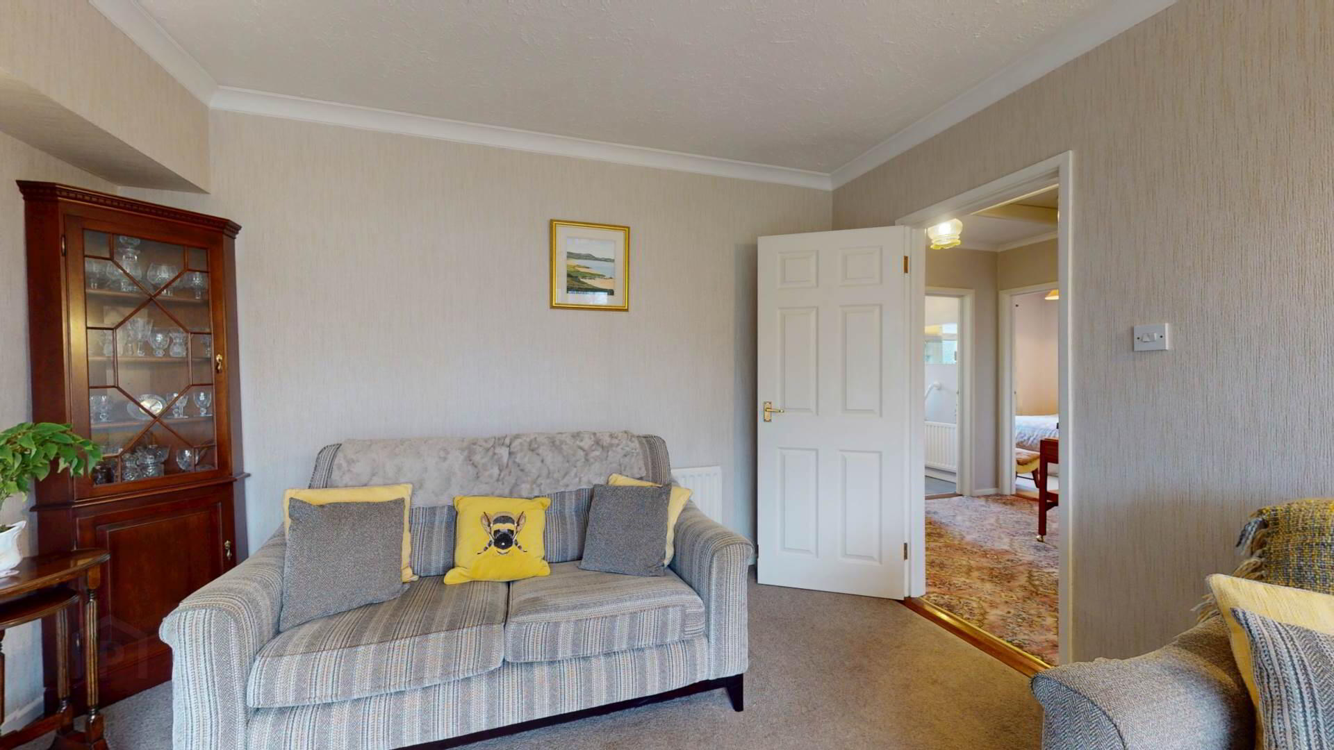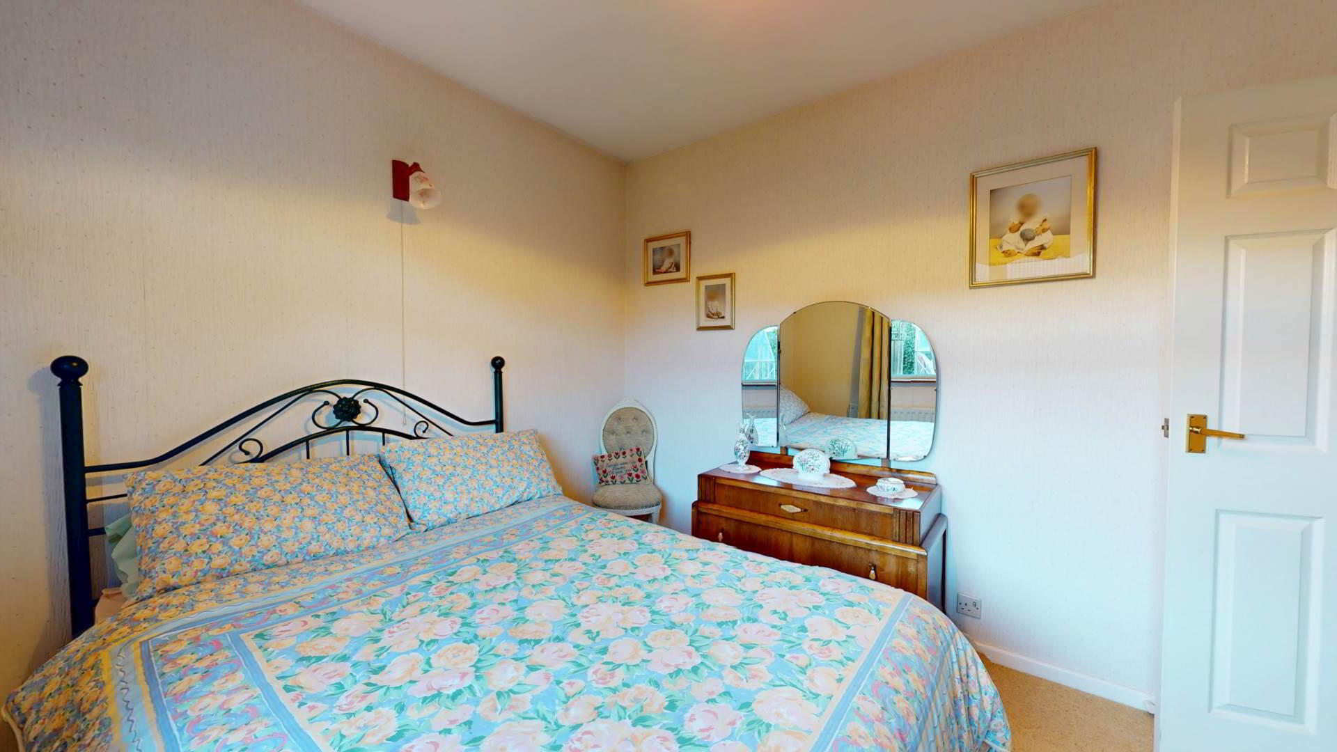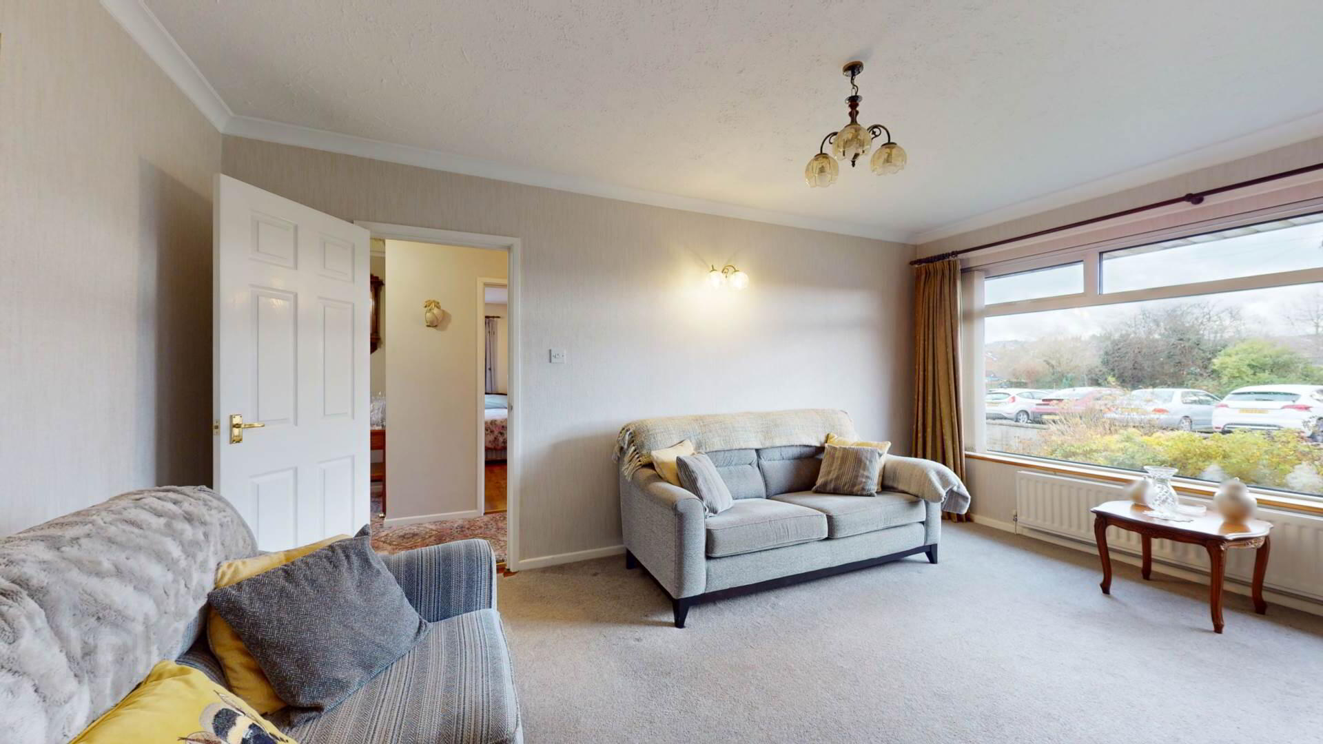 carpeted; wall lighting; loft access; smoke detection.