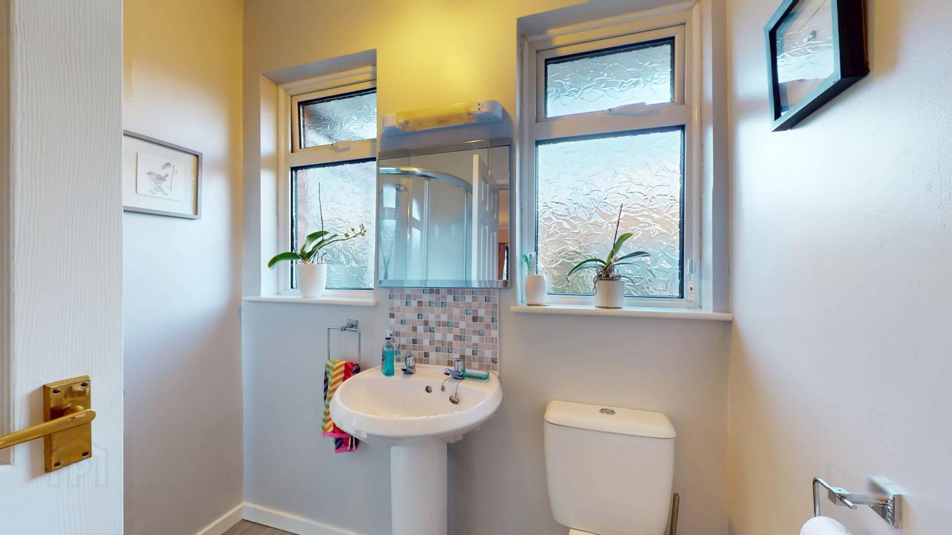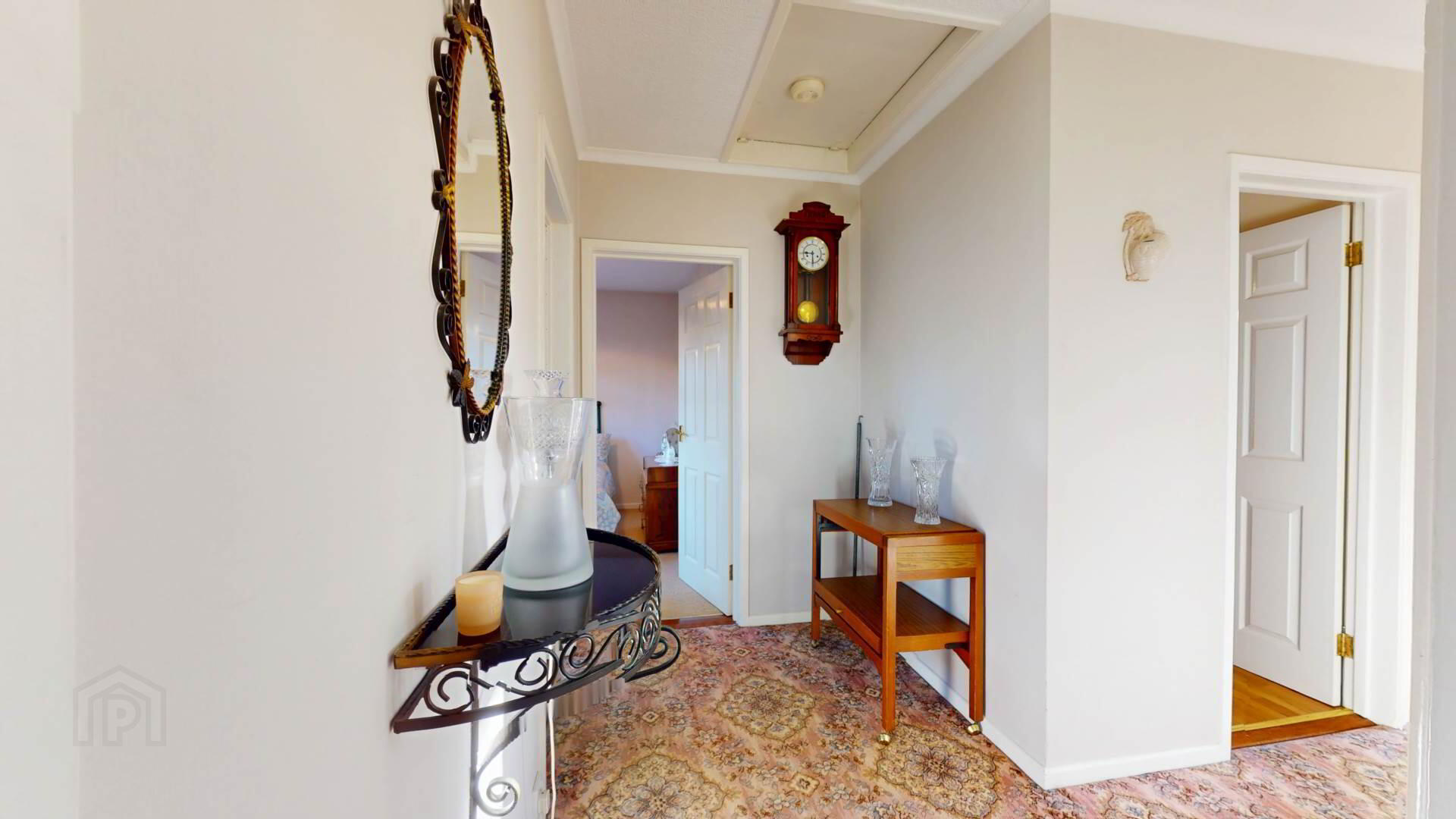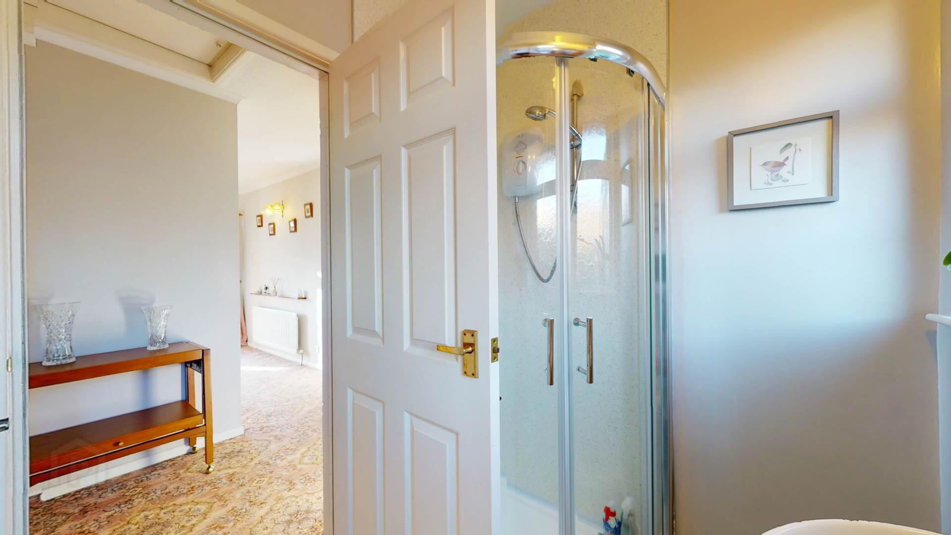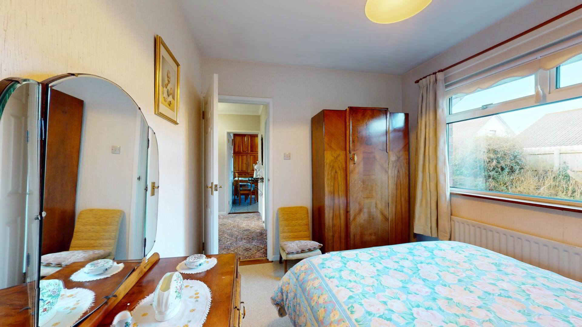 carpeted; wall lighting; loft access; smoke detection.