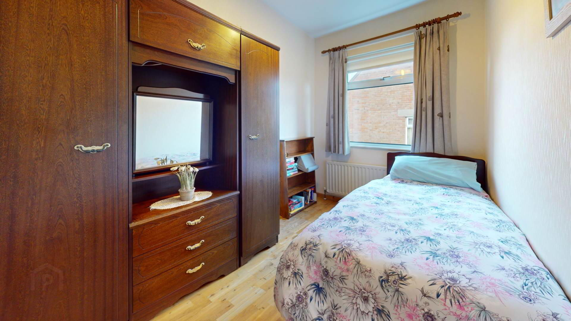 laminated flooring; double sliding wardrobe; curtain and pole; powerpoint; roller blind.