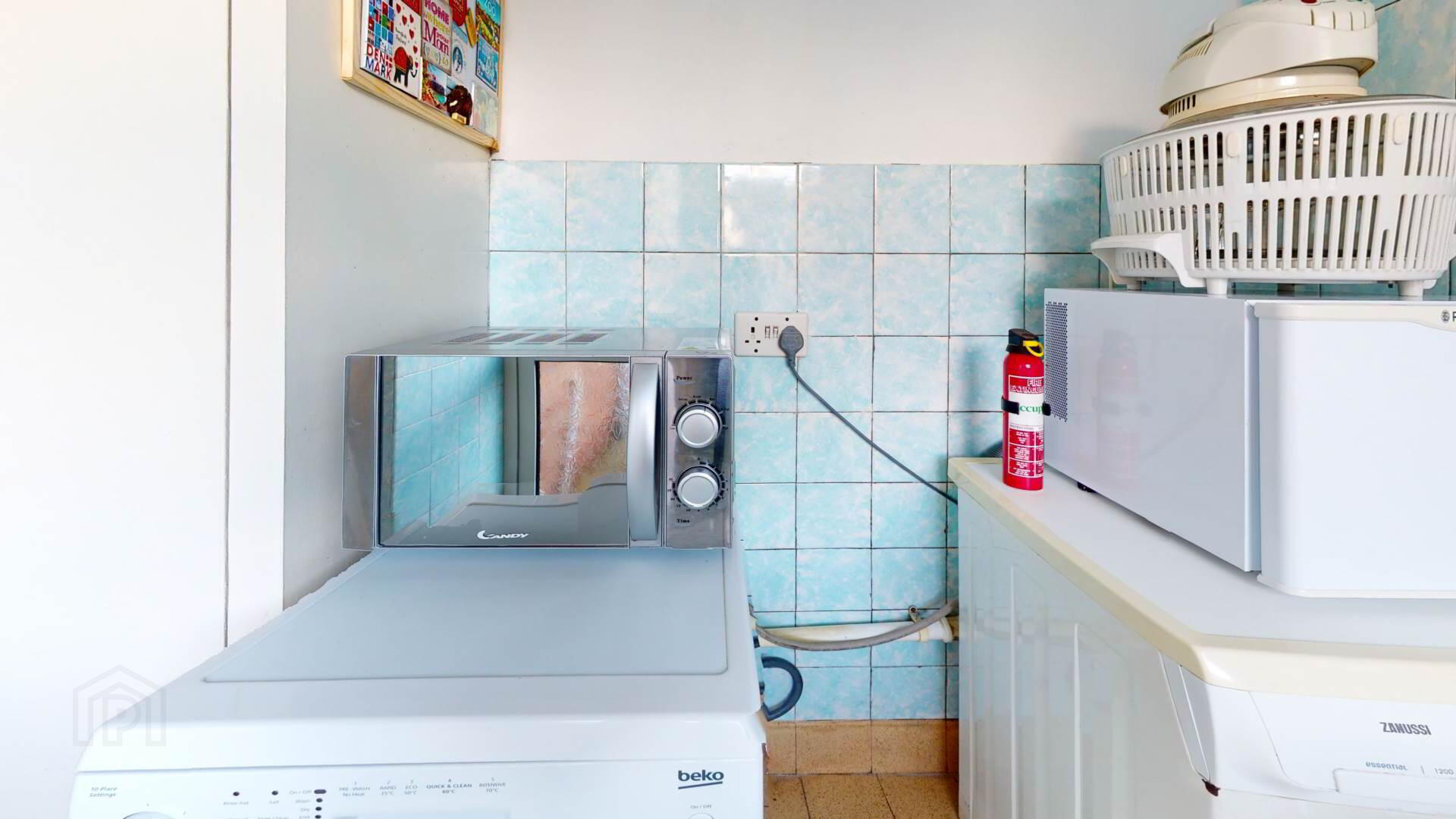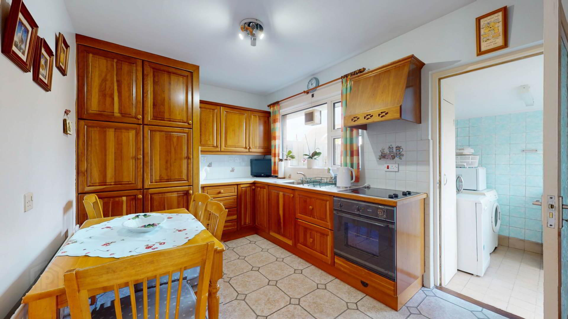 tiled walls and floor; electric points; space for automatic dishwasher; freezer; storage cupboard; uPvc double glazed door.
