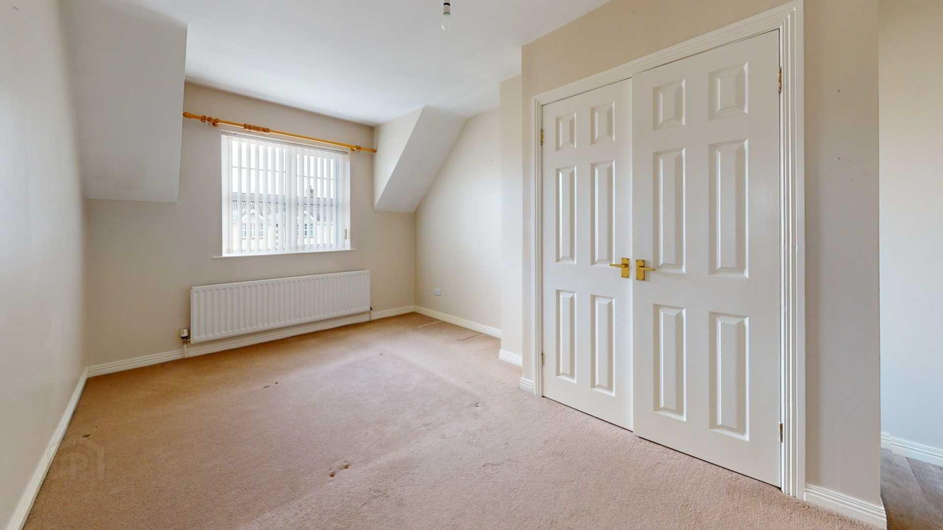 Carpeted; double built in wardrobes with hanging and shelved space; powerpoints; vertical blinds.