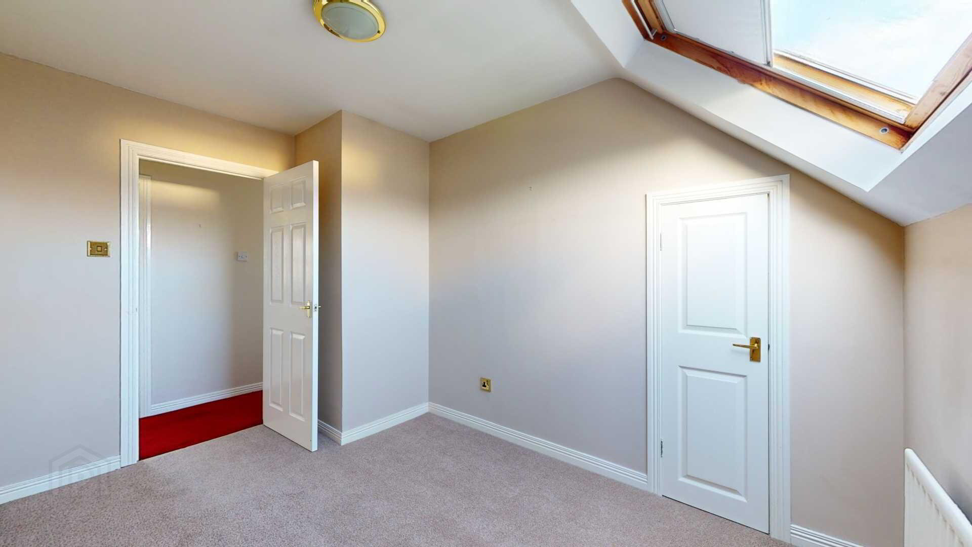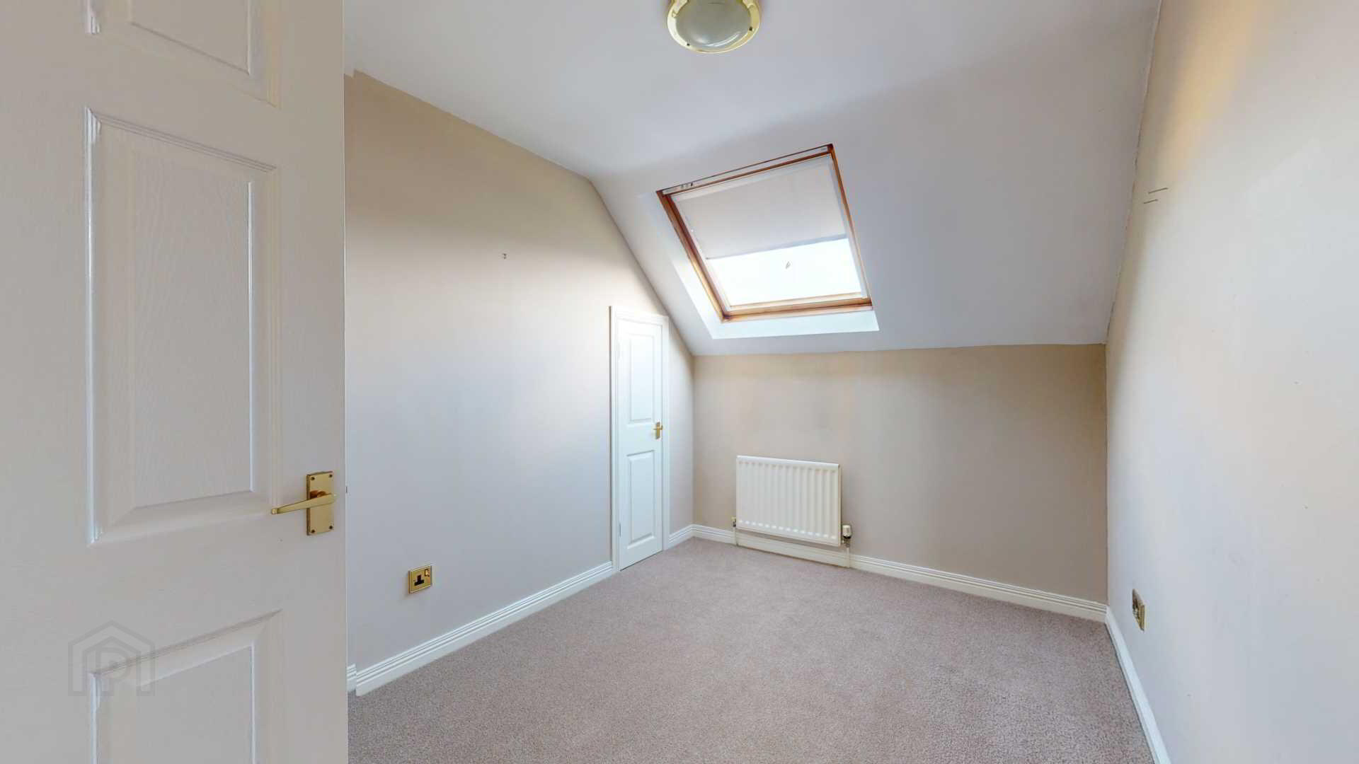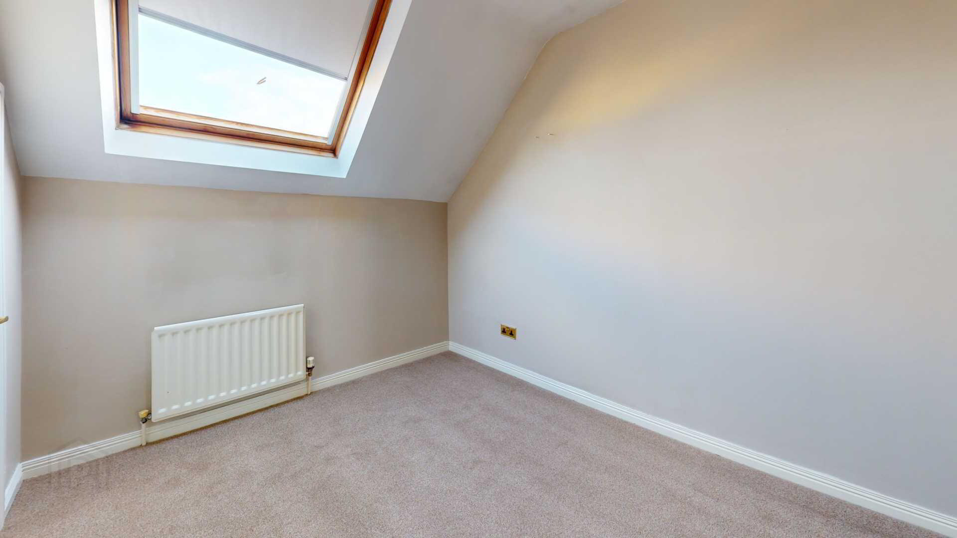 Carpeted; powerpoints; velux with blackout blind; built in storage.